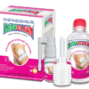 Với những vết thương lớn hoặc có đóng vẩy có thể dùng loại dung tích lớn hơn, pha với nước ấm theo tỷ lệ 1:5 để ngâm, rửa, sau đó đùng xịt hoặc đổ lên vật liệu như trên.